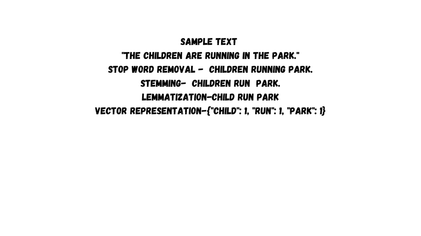 And finally vectorization, where you transform text into numerical vectors, enabling machine learning models to process and derive insights effectively. Let’s take a sample text and perform these preprocessing operations on that.