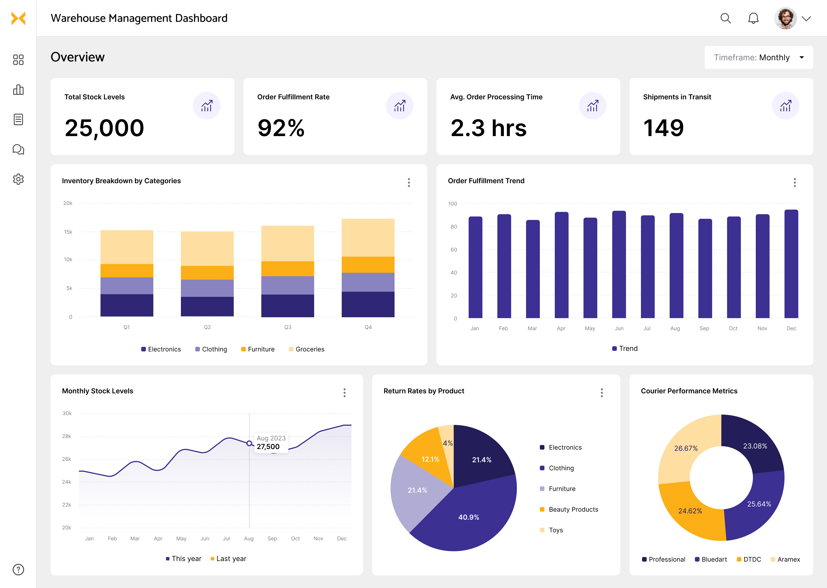 Warehouse management dashboard